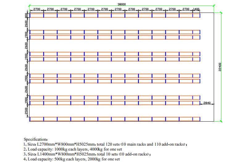 1. ชั้นวางพาเลทมีความจุสูง ช่วง (ความยาว) ของชั้นวางพาเลทจะพิจารณาจากขนาดของพาเลทเป็นหลัก โดยทั่วไป สามารถวางพาเลทแบบธรรมดาสองพาเลทบนชั้นของชั้นวางได้ แต่โดยปกติสองพาเลทจะไม่เกิน 5,000 กิโลกรัม